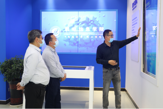朱有清一行在校领导陪同下走访了校园,先后参观了创业园、“望道行”实践教学中心、智能制造实训中心、创意园、媒体智融中心。走访过程中,朱有清详细了解了学校发展历史、办学特色、基本情况等,并对学校的办学给予高度评价。