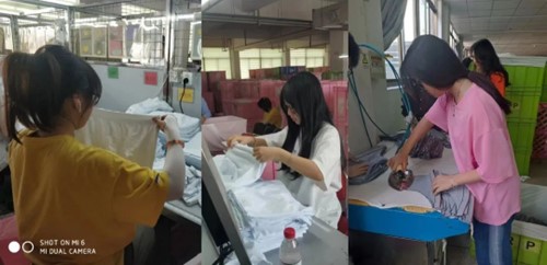 天派公司对于订单班学生的劳动实践活动非常重视。公司领导组织了研发、品控、生产以及行政等多个部门的骨干担任导师,指导学生的劳动实践。企业导师选择了多个生产场景让学生亲自动手,例如原料整理和分类,内衣瑕疵的识别,内衣熨烫整理。通过这些实际操作,服装专业大一新生对于无缝内衣的生产流程、工艺和质量控制有了初步的了解。我们的学生体现了敏而好学、不耻下问的精神面貌,得到企业导师的一致肯定。