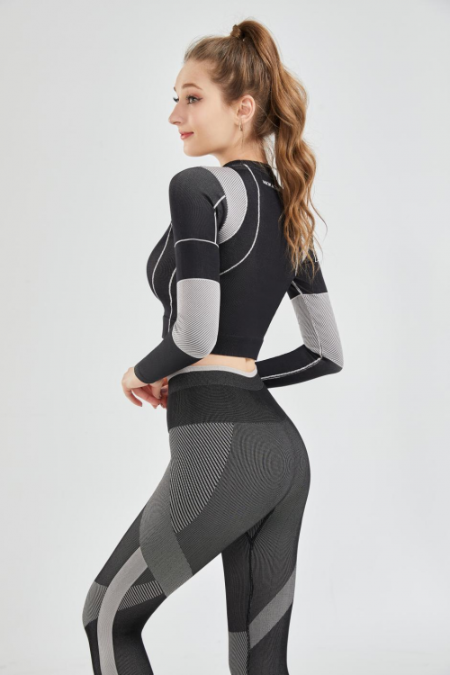 线形执行起来很简单,却可以大胆地展现出来。领口及线条走向突显胸部的优势,不同色彩的碰撞拼接,丰富视觉感受。瑜伽裤采用了紧身的设计,很好地勾勒出大腿线条。提臀线显立体臀形,在视觉上可以起到提升臀线的效果。自信展示你运动的力量!